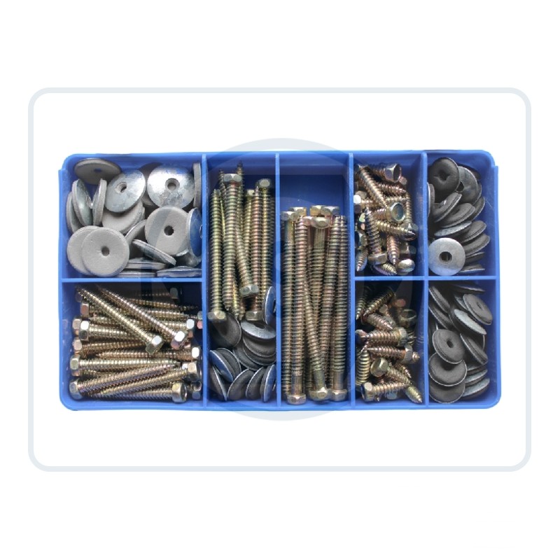 ISO 1479 roof screws are a type of self-tapping screw specifically designed for securing roofing materials to a substrate. They have a coarse thread pitch, and a sharp point. These screws are commonly used in roofing applications to secure materials such as metal sheets, tiles, and shingles. These Assortment Kits provides multiple sizes of product in a convenient utility box.